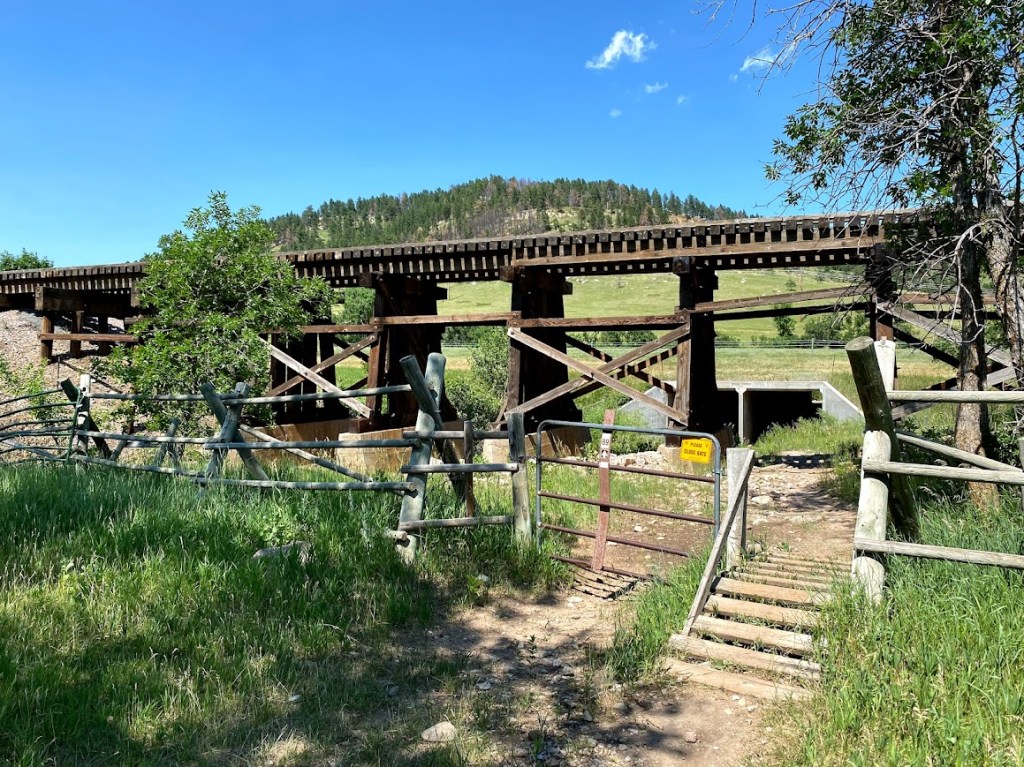 The trail dropped for the most part on our way to I-90, which we crossed via a tunnel. Alkali Creek was dry so we stopped at the campground to refill our containers from a water fountain. We also dumped our trash. Campgrounds sure make the trail luxurious! From there we continued on to BLM land and another hill climb far above I-90. Any progress we make today means a shorter final day!