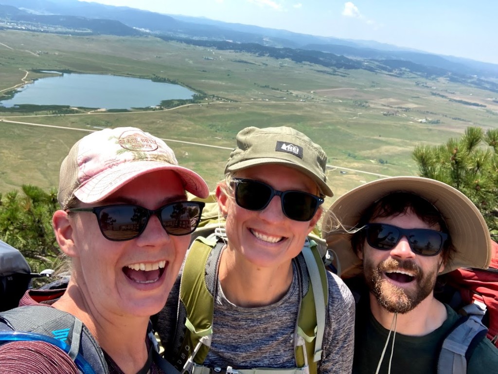 Shortly before 1 pm we reached the top, which turned out to be a large wooden platform. Yay, we walked 123 miles across South Dakota!!!! We celebrated by having the second half of our lunch in the shade of the only tree. Victory made it taste so good! It was my second completed thru-hike and the first for Jenessa and Mike.