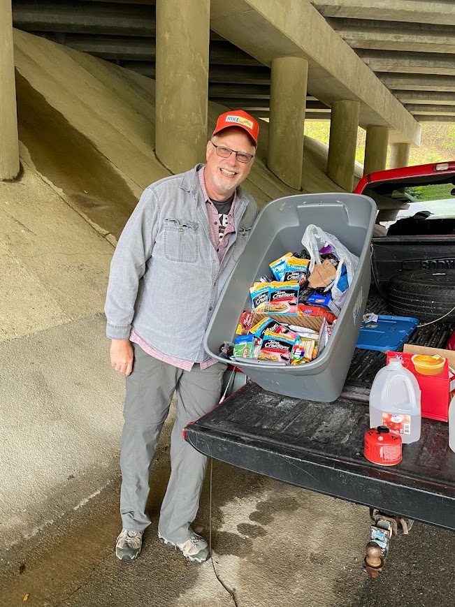 At Sam’s Gap I encountered trail magic 2. Chuck & James had a camp stove going and offered me delicious black coffee. Chuck also had cowboy caviar, a salsa with beans that I ate over chips. Right next to them Wiseman had a tub full of resupply items. He started the trail in April, but got off at Neel Gap as one knee failed and required surgery. He hoped to try again next year. I got peanut butter and bars from his tub. Talking to Wiseman was fun; he knew the Trek and had run into a couple trail superstars.