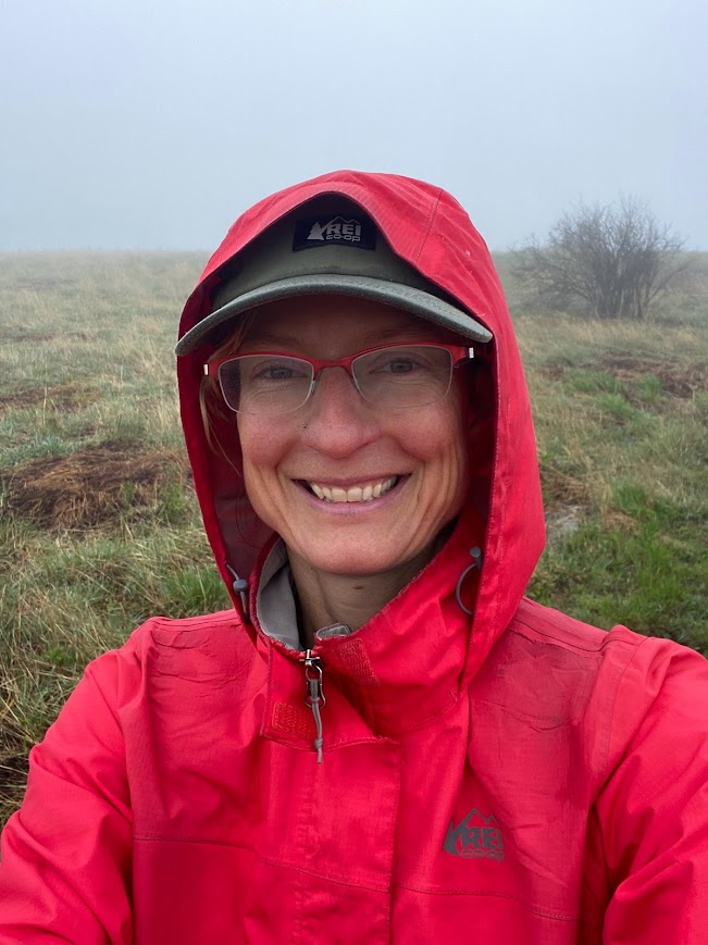 Thunder woke me early in the morning. I heard a few spatters of rain so I ran outside to fetch my bear bag before it got wet. When I woke at 6 am the rain had passed and it was foggy out. I used the privy, got another liter of water, ate breakfast, and hurried to get on trail. Everything dripped so I wore all my rain gear. I enjoyed myself, didn’t see anyone else on trail and the fog swirled mysteriously.