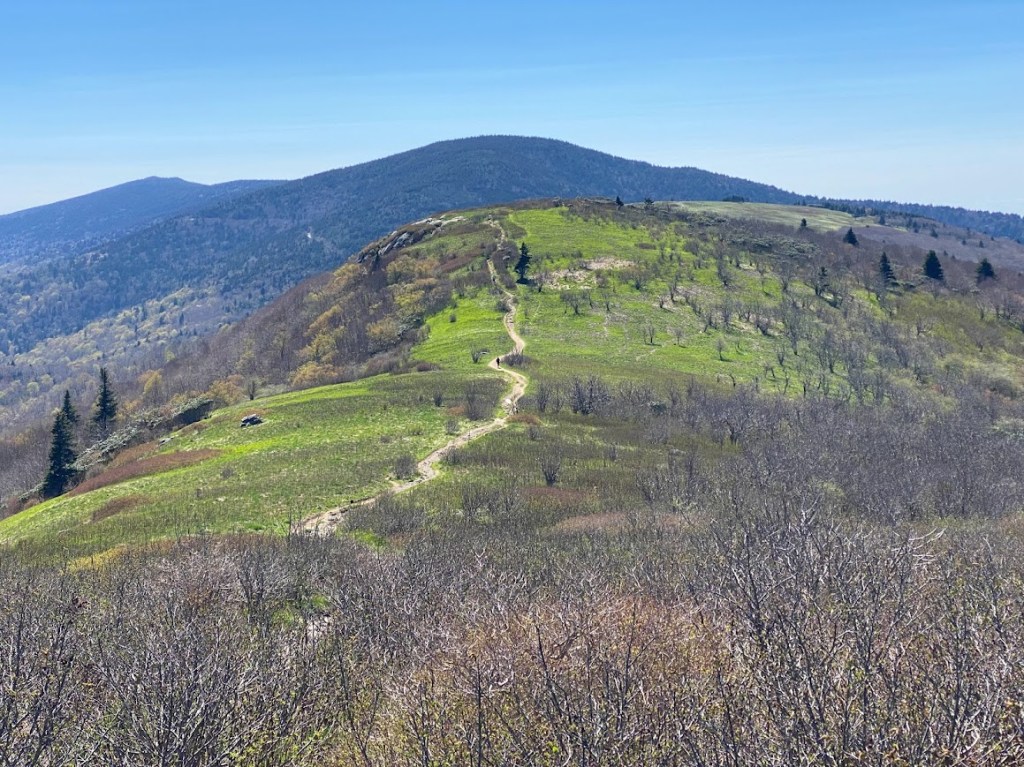 Grassy Ridge was entirely worth the side trip and additional climb. In fact, after Carver’s Gap the trail was impressive all the way to the ridge. It stood out as a brown ribbon that climbed up and down grassy hills and offered striking views.