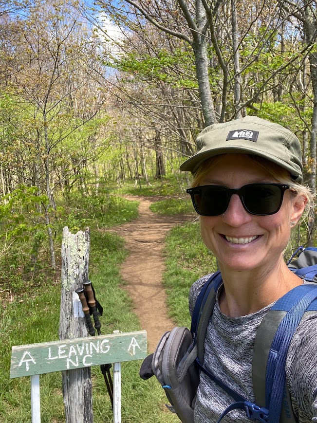 The magic continued as the trail took me over the grassy balds of Little Hump Mountain and Hump Mountain. Each offered breath-taking vistas in every direction. Occasionally piles of black lumpy rocks jutted from the vibrantly green grass. I watched a couple birds soaring in the mostly cloudless blue sky. The descent from Hump Mountain brought me to Doll Flats and I said goodbye to North Carolina, after weaving between it and Tennessee ever since the Smokies.