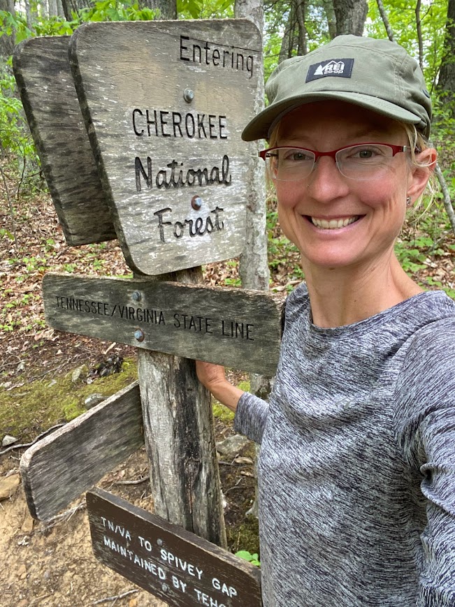 I started my day eager to reach Damascus. The 13 miles flew by, most of it wooded terrain. When I was 3.5 miles away from town, I encountered the Tennessee/ Virginia state line. Yay, a new state and three states behind me! Not too long after, I went down a blue-blazed side trail to get water and discovered a salamander, orange with orange spots! It’s exciting to see so many salamander varieties! The sky poured rain on me while I filtered water, yet the downpour was brief so I didn’t mind.