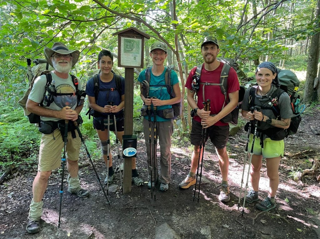 The park had an Appalachian Trail Museum filled with fascinating exhibits about Myron Avery, Heather Anish, trail history, and hikers through the years. Then it was back to the trail for seven miles hiking to a lovely site alongside a creek. A thru-hiker named MacGyver joined our dinner log circle.