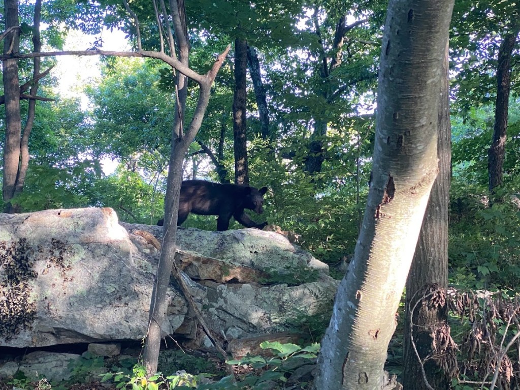The trail used an underpass beneath I-80 then entered a recreation area, gradually climbing uphill beside a creek. I took a picture at the 1,300 mile point. At Sunfish Pond I saw a frog and a garter snake. A little later I encountered a colorful snake that vibrated its tail at me as it quickly slid off trail. It had no rattle and from research I think it was an Eastern Milksnake. My audiobook felt fitting for as I hiked so did the fellowship of the ring.