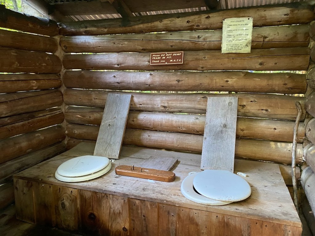 It felt strange to stop so early, yet it was fun to have play time on the trail! I hiked up to Piazza Rock and was impressed. It looked like a massive boat adrift on jagged rocks. Then I thoroughly shook and swished my water filter, improving the flow somewhat. I checked out the “Your Move” privy with two toilet seats and a cribbage board in between.