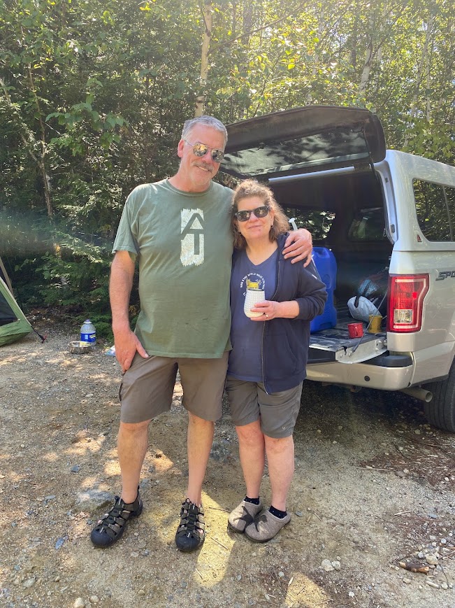 Initially I bounded along, filled with energy. However, it slowly declined until I felt tired and wished for coffee. Luckily, at Jo-Mary Road there was a sign for trail magic and it was amazing. A lovely couple named Chili P and Laurie with their dog Effie. They had coffee, corn on the cob, and grilled portobello mushrooms. It turned out our food drop was late so we hung out for two hours, chatting with our trail angels, Sir Elton, and Hypo. When the drop arrived, the driver gave me gluten free banana bread made by his wife. I was excited!