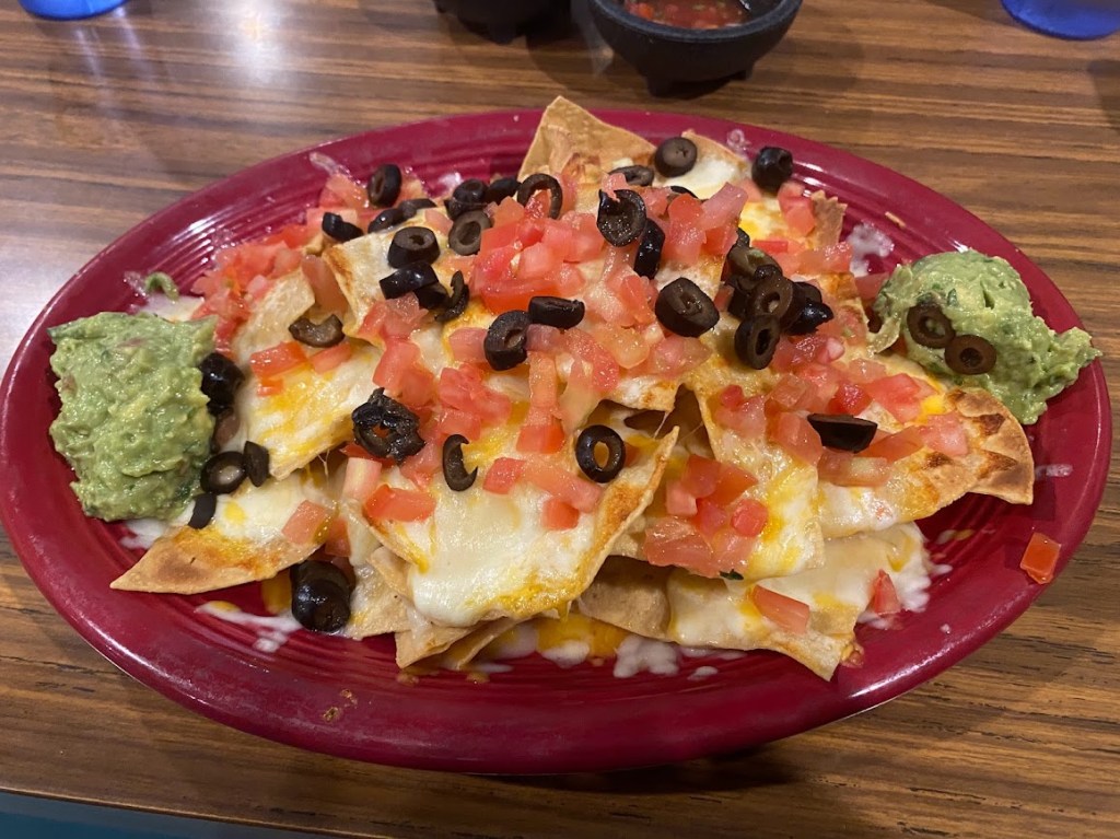 Eventually the wind lessened and the trail descended into a valley. The sun even came out and I began to dry a little. Karin & I chatted about the ordeal. Two miles later we were walking through the outskirts of Agua Dulce and 1.7 miles after that we were sitting down to dinner, where I ate a ton of chips & salsa followed by a large plate of nachos. Martina joined us shortly after our entrees arrived.