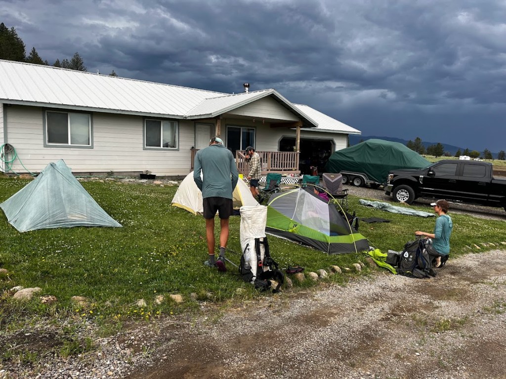 While we set up four tents in the front yard, Kelsey & Shay brought out five camp chairs, a surge protector for charging, and a table where they laid out taco fixings and beers. There were even GF tortillas and cookies! Also, the kind couple let us use their bathroom. Their son Brighton and daughter Riley were neat kids; excited to have guests. The neighbor’s dog came over and I threw it a ball over and over. We all hung out in the yard and chatted. It was a lot of fun! A light rain ended the socializing and sent us to our tents.
