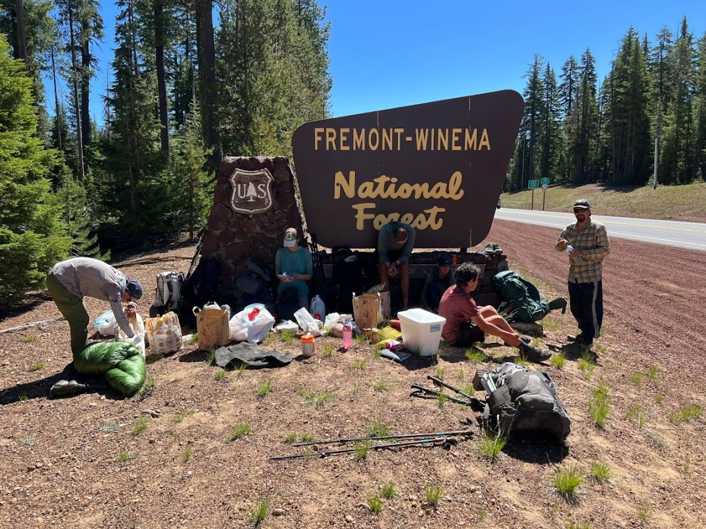 The rest of our PCT tramily arrived as well as Nacho, Miles, and two section hikers. In addition to pizza, Sonic brought Trader Joe snacks, cold drinks, and resupply for Hobble-it and I. There were so many yummy snacks and items, plus leftover pizza, that I used that as my resupply. We hung out until noon, then Sonic left along with Nacho, who needed a ride to Ashland.