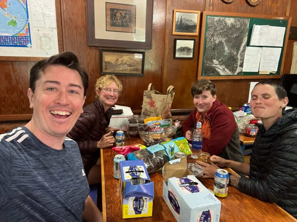 For $45 a night, the Washington Alpine Club offered a shower, laundry, dinner, breakfast, and a bunk in their large cabin. Hobble-it and I arrived at noon and immediately started a load of laundry. I had enough time to jump in the shower, then Sonic was there, along with Eden. They’d driven an hour from Seattle to bring new shoes for Hobble-It and yummy snacks for both of us. Sonic spoiled me with GF cookies and two types of GF muffins.