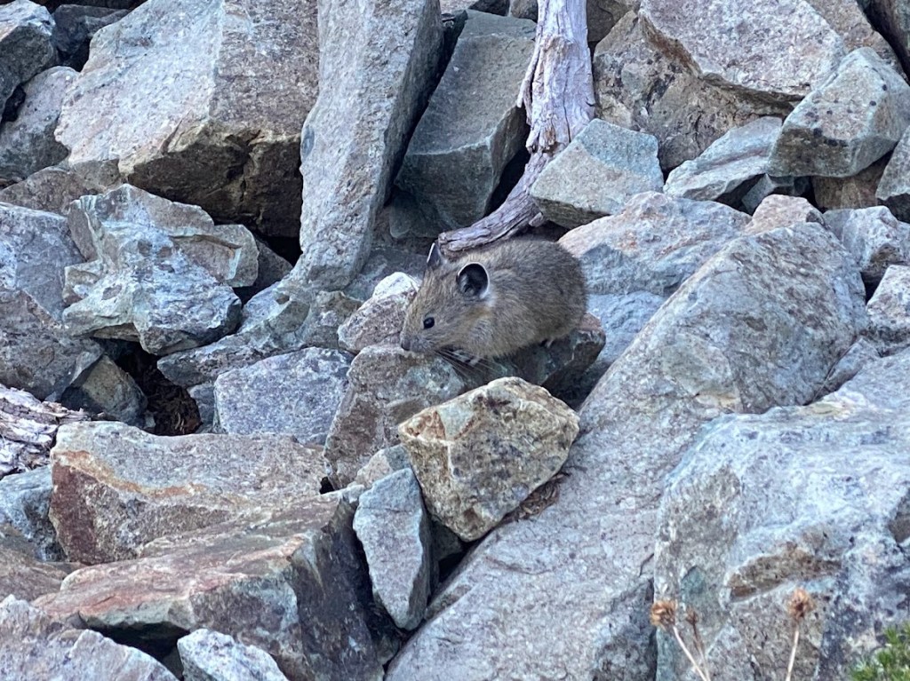 However, I didn’t sink into the swamps of sadness. As I ascended away from the lake, I saw a couple pika. Then I dropped into the next valley and saw a giant yellow-bellied marmot. Another marmot, darker in color, let out a piercing whistle. I hadn’t heard such a noise from one before. A passing day hiker told me a slang term for the animal, “whistle pig”. My spirits soared, fueled by critter sightings and the realization that my earlier train of thought was not a helpful one.