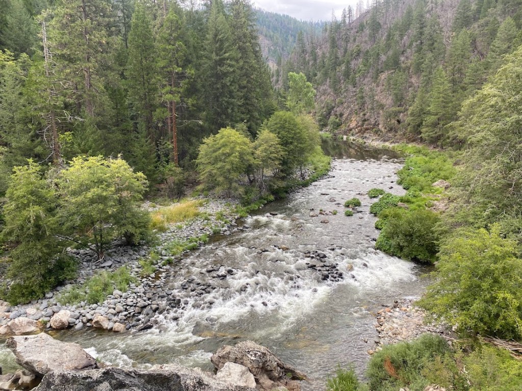 I hoped to make good time on the long downhill to the Feather River; however, the trail was almost entirely loose rock. My socks felt like sandpaper after getting wet yesterday and slowly drying on my feet. I took a break, found a cold stream in which to wash my feet and calves, then put on clean socks. It helped, though the impact began to bother my left foot.
