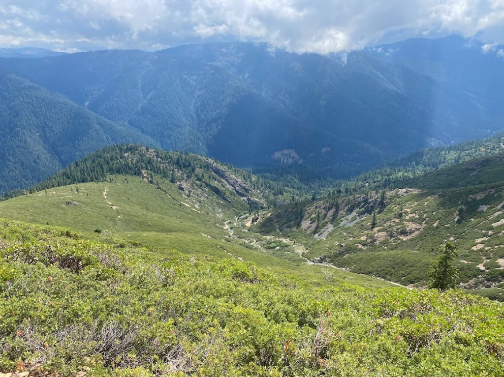 All morning I had the trail to myself, though as I finished lunch with a view, a SnoBo walked up. This year, SnoBo means a hiker who finished the desert then flipped to the Canadian border to walk south. Her name was Summer. I didn’t see her again until day’s end, when I camped nearby in a wooded spot.