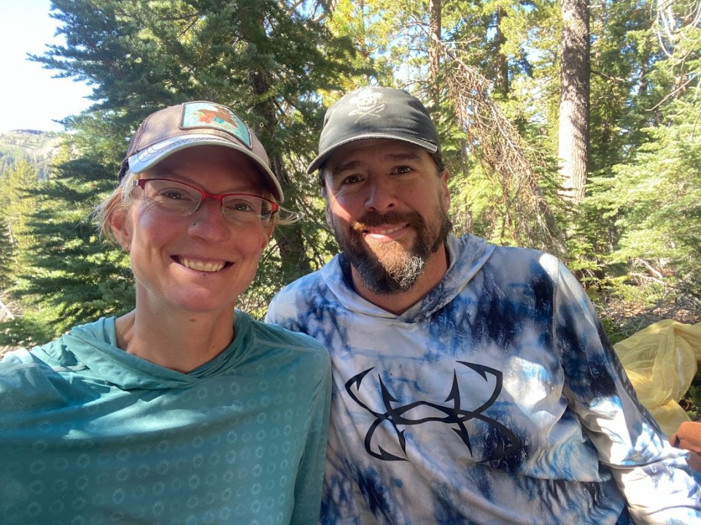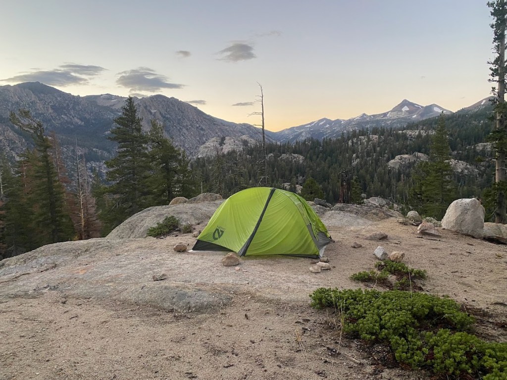 As the day progressed, I was on the lookout for Sky-Hi, who was headed north from Sonora Pass. Hobble-it and Sandbag tried to meet up with him prior to the rainy weather, however they missed one another. I stopped at a tent site beside the trail to eat lunch and dry items. Getting ready to depart, I saw Sky-Hi coming down the hill! He saw me, dropped his pack, and gave me a long hug while saying he really needed to see a friend.