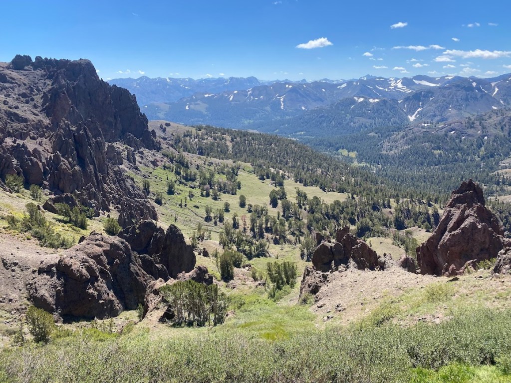 The views from the descent were epic. A vast sea of peaks filled the distance with knobby, brown rock formations in the foreground. At the bottom was Highway 108. I waited with three other hikers, all of us sticking thumbs out for a hitch. A trail angel came by in a full car and arranged a hitch in the car that followed hers. We convoyed to Kennedy Meadows Resort Ranch.