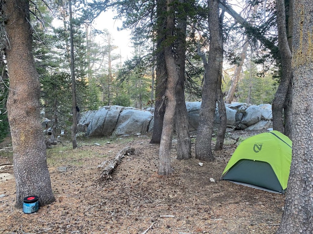 Ideally, I’d have gotten on trail immediately, however, my battery pack only charged 33% in town. I plugged it in at the hiker building and called my parents. Then I met this cool guy Elliott, who was hiking the north half of the JMT, his first long trail. He asked me gear and trail life questions, gave me home-dehydrated miso soup to try, and had me sample his tofu jerky (chewy). Afterwards, I hiked three miles to camp, setting up my tent after dark.