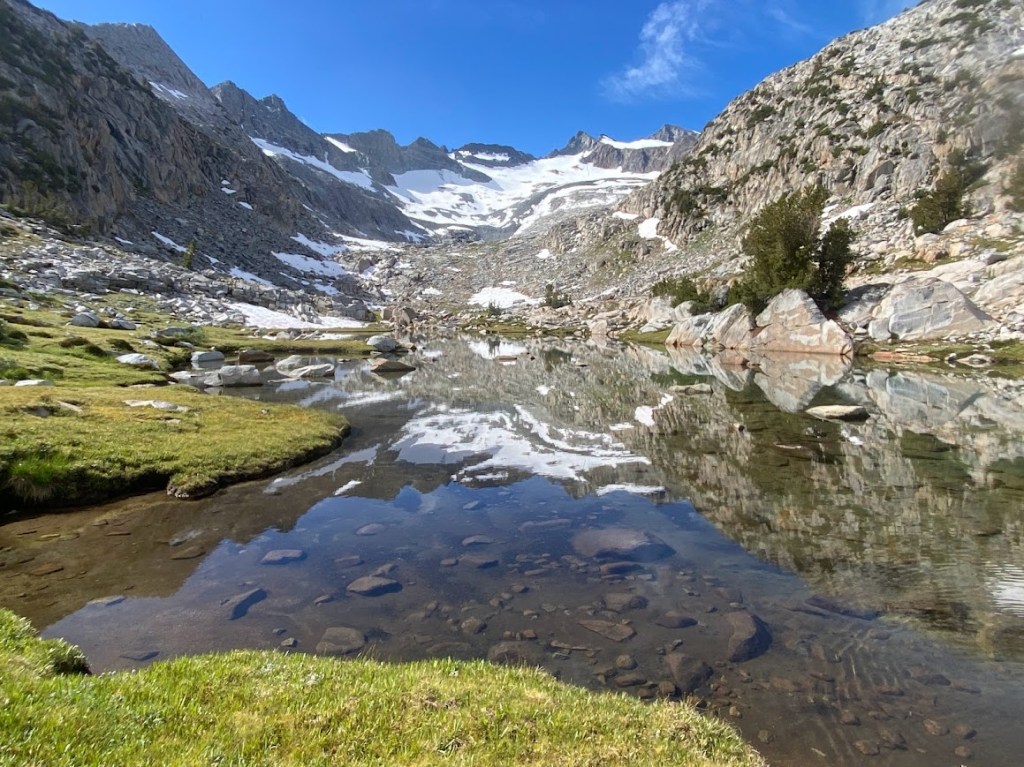 Back in the rain, I went on. I cursed the rain for its annoyance and smiled at a few bedraggled people that passed. Eventually it stopped raining and there were patches of blue sky! I hiked the last 2-3 miles and camped at Vogelsang Junction, a 26.7 mile day. After collecting water, I settled into my tent, piling damp clothes in one corner and changing into dry ones.