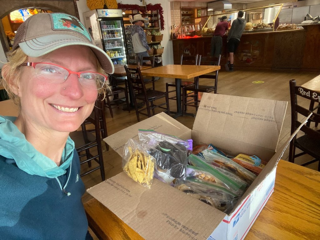 The shuttle into Mammoth Lakes ceased operation two days before my arrival. Happily, I got a hitch from two ladies in a pickup who put me in the back. I enjoyed the rush of air and scenery without the filter of a window. In town I got my resupply box at the post office. I took it to a coffee shop for incorporation into my pack. My sister added GF mint Oreos and my parents added Jalapeño Lime tortilla chips. Yum to both!