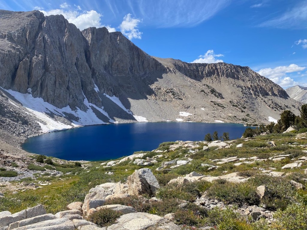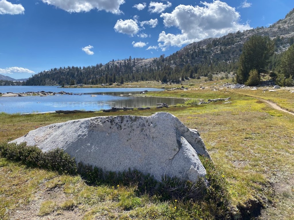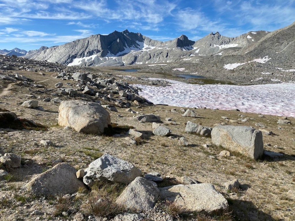 On the ascent, I lamented over not seeing pikas in the Sierra. Then we rounded a corner and one squeaked at us, yay! I’ll admit, I was getting demoralized by the Sierras until I met PBS; she said the same. It’s the trickier terrain and all the high passes, much better with company. Plus it’s great to share meals and weather woes.