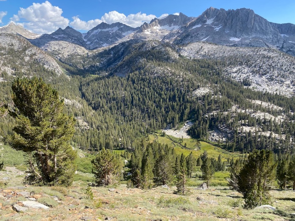Even though Pinchot Pass, at 12,127 ft., was the highest pass besides Forester, it felt easier than the last couple. On the ascent, I passed the stunning blue waters of Lake Marjorie. From the top, there was a nice view into King’s Canyon National Park. The first half of the descent went quickly while the last four miles seemed to go on forever. We camped near a suspension bridge over Woods Creek.
