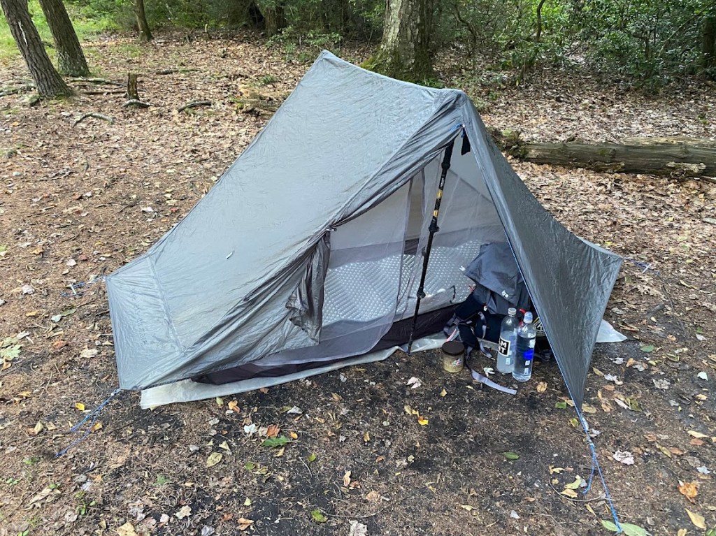 I spent the summer as an Appalachian Trail ridgerunner, first in Shenandoah National Park and then in Michaux State Forest. On my second Shenandoah patrol, my 60 liter Granite Gear pack suddenly felt too large. After moving to Pennsylvania, I ordered a Gossamer Gear Kumo 36 and tried it on my last two Michaux patrols. It cut a pound from my base weight, provided space for my gear, and fit my body well. I had contemplated and passed on getting a new tent until a fellow ridgerunner, Parker, loaned me a tent. It was a Gossamer Gear The One and I found it surprisingly roomie, with space to keep my pack near my feet and to sit up comfortably. I liked that it gave my trekking poles a second use and that it cut another pound from my base weight. I ended up buying it from Parker. On my last patrol, I used it on a rainy afternoon/ evening and it kept me dry.