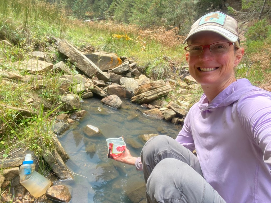 Mid-morning I took a coffee and snack break, sitting on a wooden bench that I discovered in a trail-side campsite. Above me, a woodpecker made a tapping sound. Two miles before the water source, I came upon pools of water. They continued all the way to the source itself, General Springs. I’d only seen clear, moving water one other time since the Grand Canyon, it was a welcome sight. I ate lunch then gathered ~4.3 liters of water, the most that I’d carried all trail.