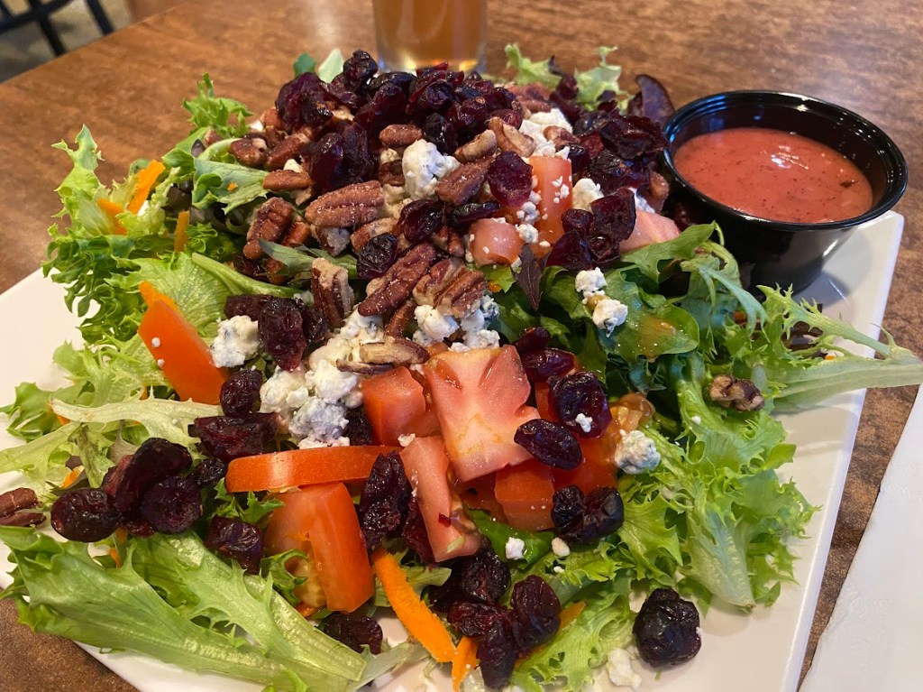At THAT Brewery, I picked up a resupply box and got a table. It’s fun seeing what meals, snacks, and extras are in the box. My battery pack seemed awfully slow to charge, maybe I need a new one? I ordered kombucha, a large veggie salad with pecans, cranberries, blue cheese crumbles, & vinaigrette, then a scoop of vanilla ice cream.