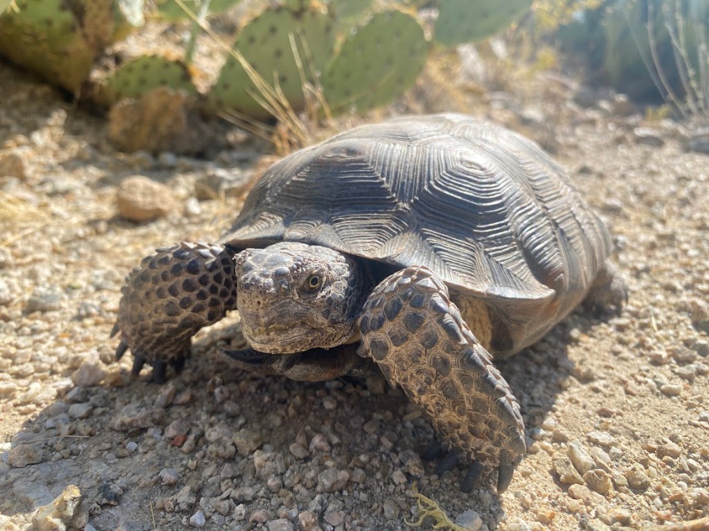 As if the day hadn’t been generous enough with creatures, soon after the rattlesnake I came upon a Mojave Desert Tortoise. Yay! I’d really wanted to see one. It was very calm, even when I got down right next to it. The tortoise simply blinked and examined me back. A short distance later there was a second one. It’s skin and shell seemed rougher than those of the first, perhaps younger?