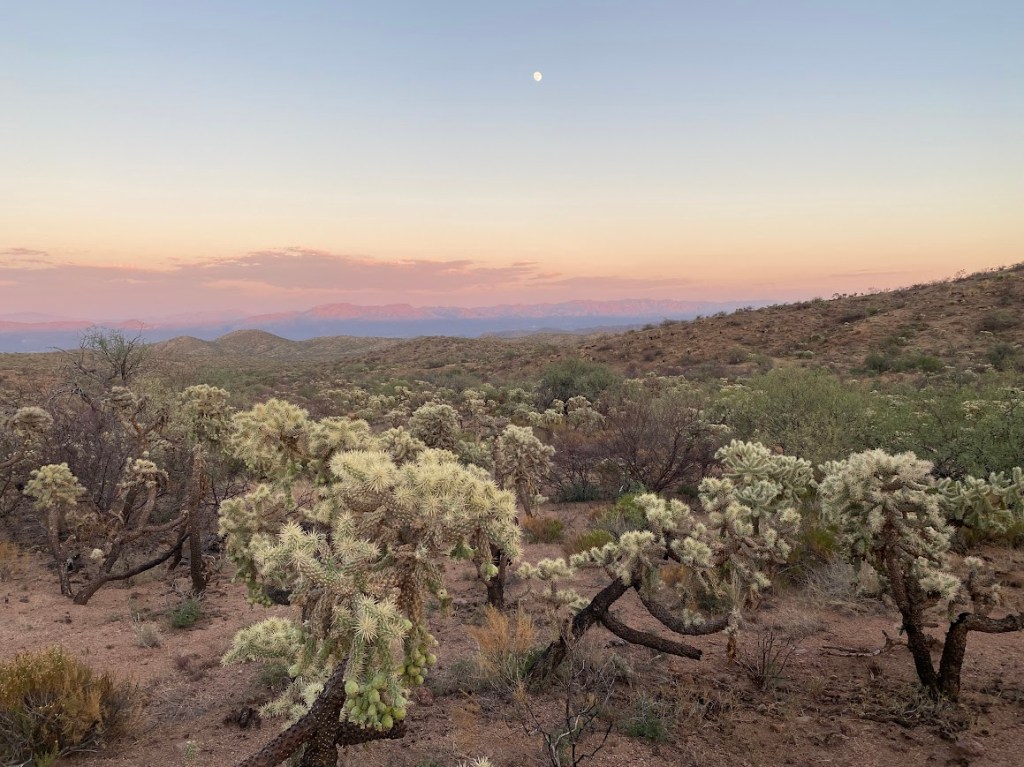 The last couple miles traveled through a neat cholla forest. The sun had dropped behind a hill so it was a perfect time for walking. I spotted at least three jackrabbits bounding amongst the vegetation. One great thing about hiking solo is making a small patch of clear-ish soil into a last-minute tent spot.