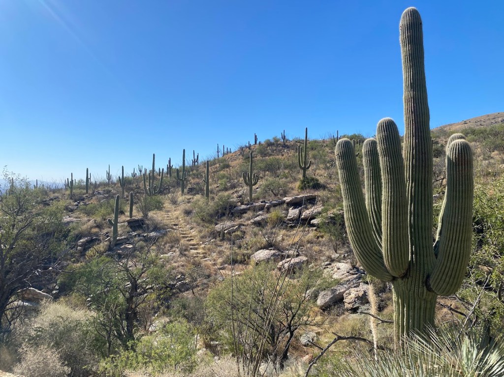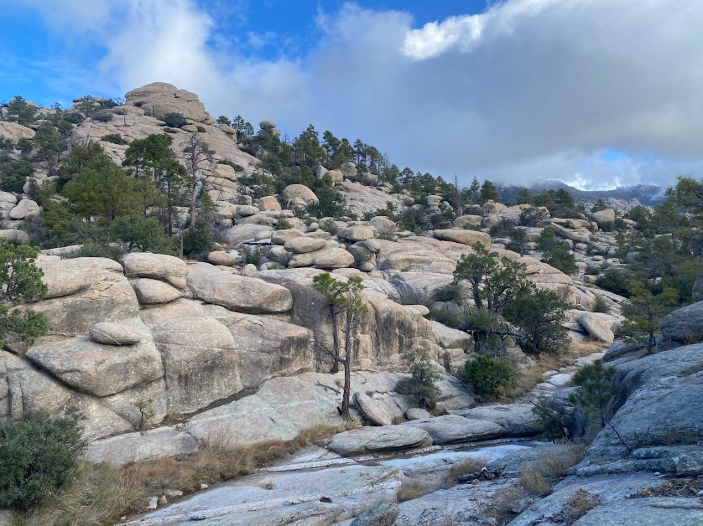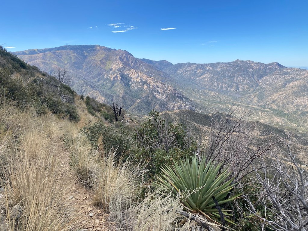 Most of the day, I ascended towards Mt. Lemmon, part of the Santa Catalina Range. I was glad for my new shoes as the ATV road segments tended to go straight up, forgoing switchbacks. Luckily, more of the climb was on trail that wrapped around hillsides and offered fantastic views.