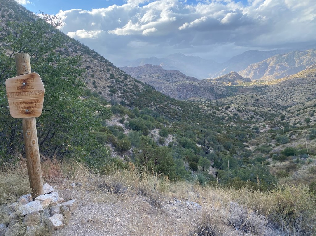 Over the day, I encountered one AZT section hiker, eight backpackers, and five mountain bikers. My busiest day since the Grand Canyon. Perhaps because it was a Friday, there were a lot of other trails, and Tucson was nearby. I also saw a lot of white-tailed deer. Oh, and I was glad I made it over Mt. Lemmon yesterday. The sky was very dark that way and I only got a few scattered rain drops.