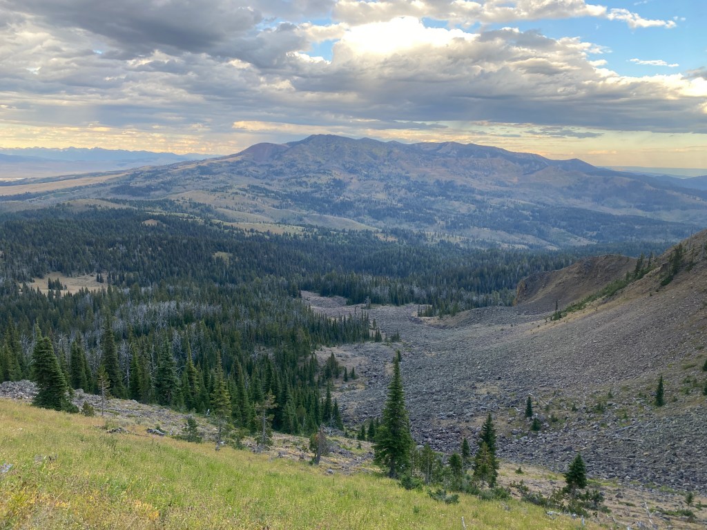 At the day’s final stream, I loaded up with three liters for a 17 mile carry. Since I’d be dry camping, I started my dinner cold-soaking. I forgot to mention that I saw a huge sheep herd yesterday. Apparently this area is the summer grazing ground for the U.S. sheep experiment station, an effort to improve sheep genetics and enhance grazing management.