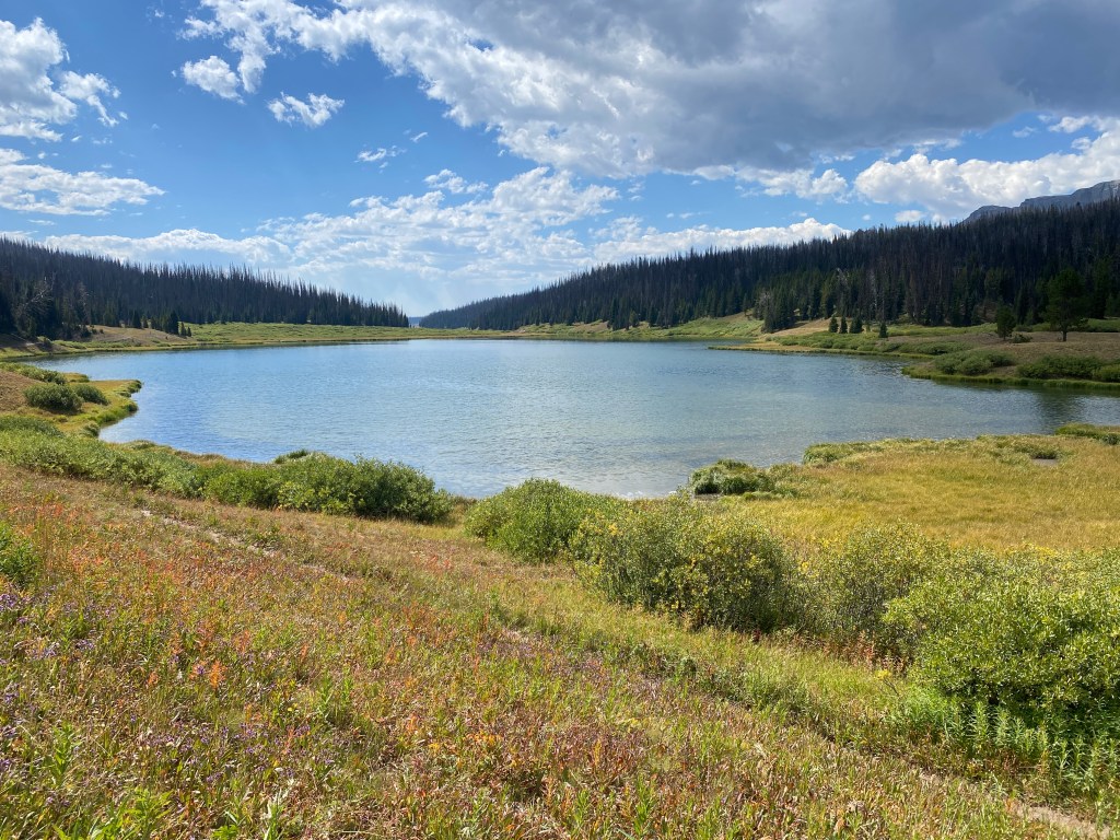 Two section hikers gave Beefcake and I a ride to the Elkhart Trailhead. He’d met them on trail the day before. From the trailhead, it was a 10.6 mile hike via the Seneca Lakes trail back to the CDT. The first half was a very gradual uphill with unexciting terrain. A literal stream of hikers were coming out, it was Sunday, and I didn’t like it. Really, it was the most people I’d seen on trail the entire CDT. Fortunately, the later half of the connector trail was a gorgeous series of lakes and rocky terrain. Seneca Lake was huge and deep.