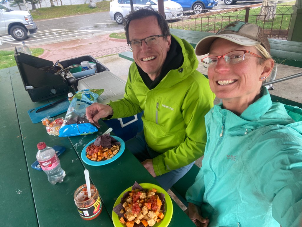 After all of us had a chance to eat, I accompanied Toolman and Dijeridoo to Safeway. Dijeridoo got frittata ingredients and I needed another trail snack as I’d finished off my chips at dinner. Back at the hostel, we chatted and shared favorite songs on Spotify. Around 11 pm, Dijeridoo and I headed to bed with most of the others still hanging out.