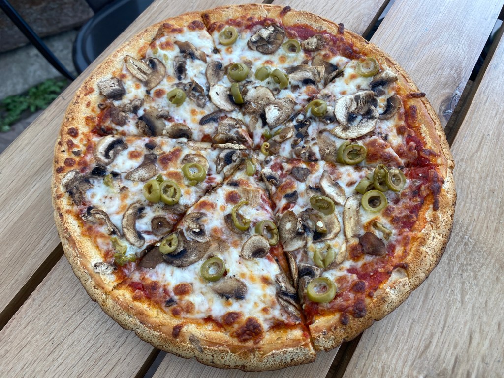 All four of us had time to kill until our new accommodations allowed check-in. I went to a thrift store to look for a small mirror; no luck. Then I walked to High Mountain Pies and got a GF mushroom & olive pizza. When I left the restaurant, it was snowing lightly, though without accumulation. I sat in a corner of the courthouse building lobby and chatted with my sister for two hours.
