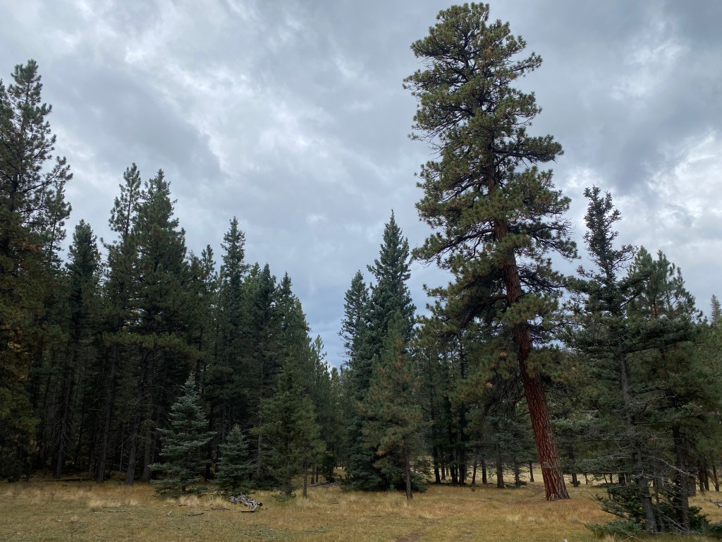 I was in my typical rain layers – sun hoodie, Senchi, rain jacket – until about noon, when I sheltered under a pine tree. It was windy, the terrain was 10,000 ft. high, and my rain jacket had leaked. As a result, I was cold. I put on my yellow puffy, which took several minutes due to my damp hands getting stuck to the sleeve lining rather than sliding easily through. It took me a bit to warm up, but the puffy helped immensely. Next issue: my hands were so cold they could barely clip my pack buckles. While in town, I’d rinsed two of my plastic quart meal bags. I put them over my hands and was impressed how much they helped, shielding my hands from wind and rain.