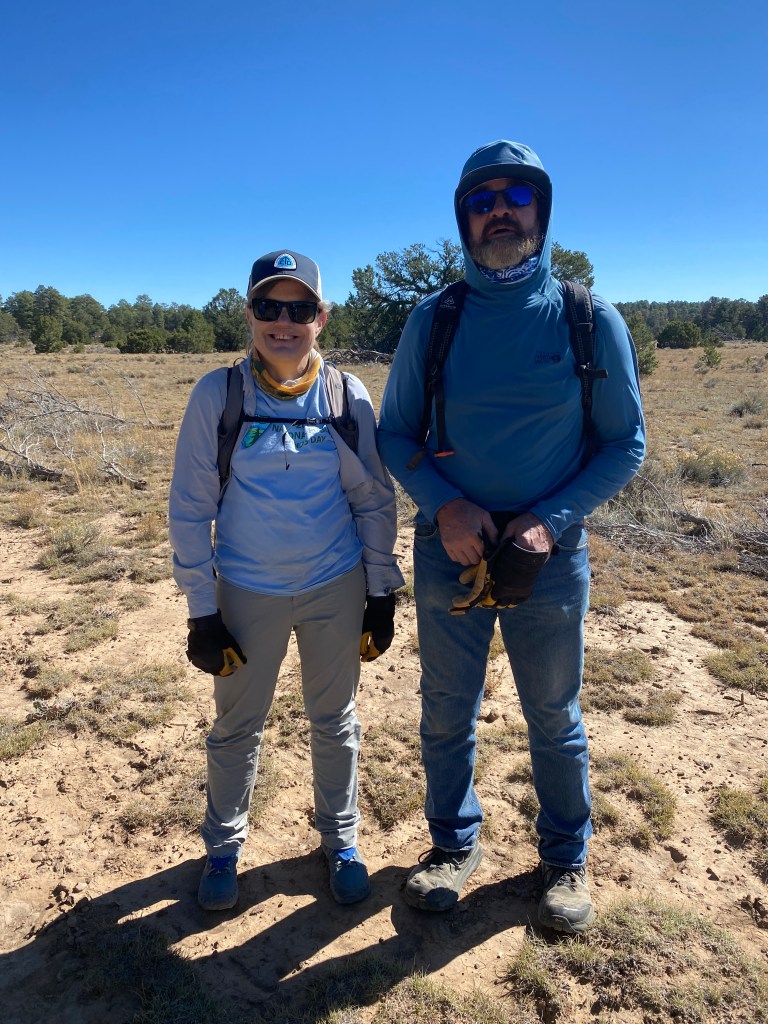 Following the climb, the trail was super flat, though still windy. We sat in a juniper nook to eat lunch. A short time after, I saw a couple hiking towards us. They were trail maintainers, with a section that covered 12 miles between two springs, and they opened daypacks full of trail magic snacks, many GF. While Quick Draw and I snacked, we chatted with Christie & David. Meeting them was such a nice and unexpected surprise!