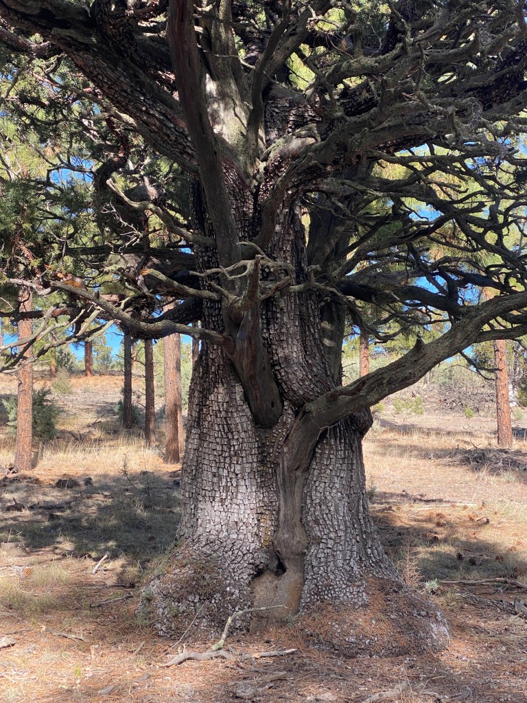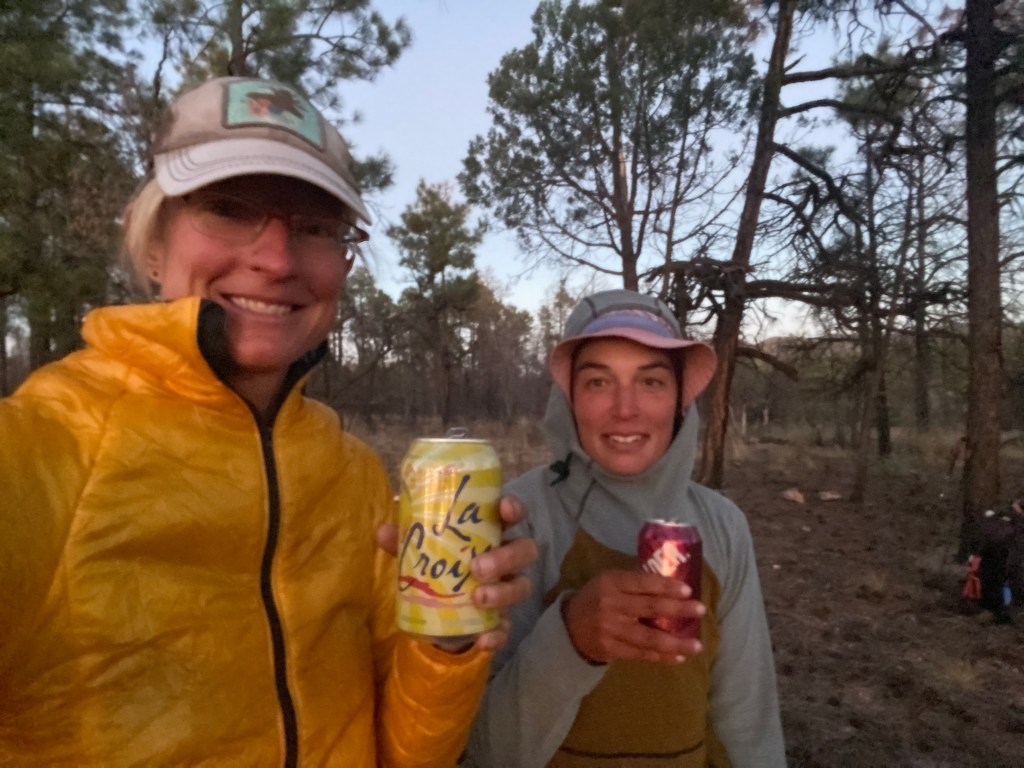 Just after sunset, we reached an intersection 0.7 miles from Hwy 59. We found our final Quick Draw cache: one liter of water, a La Croix, a Dr. Thunder. Since we found no water all day and didn’t plan to hitch until morning, it was greatly appreciated. We pitched our tents in a large site with a ponderosa tree at its center. We’d done over 26 miles, our longest day together, and were ready to rest. Top Shelf felt 100% for the first time this section and ate a good dinner. I ate dinner plus lots of honey roasted M&Ms and went to sleep early.