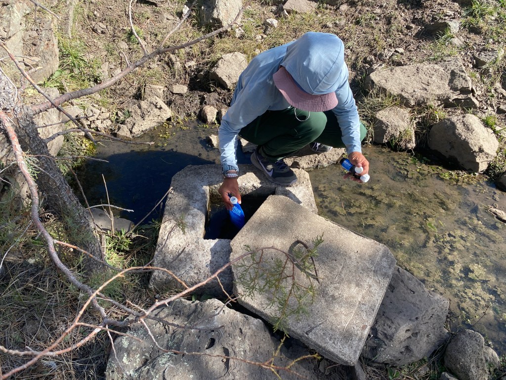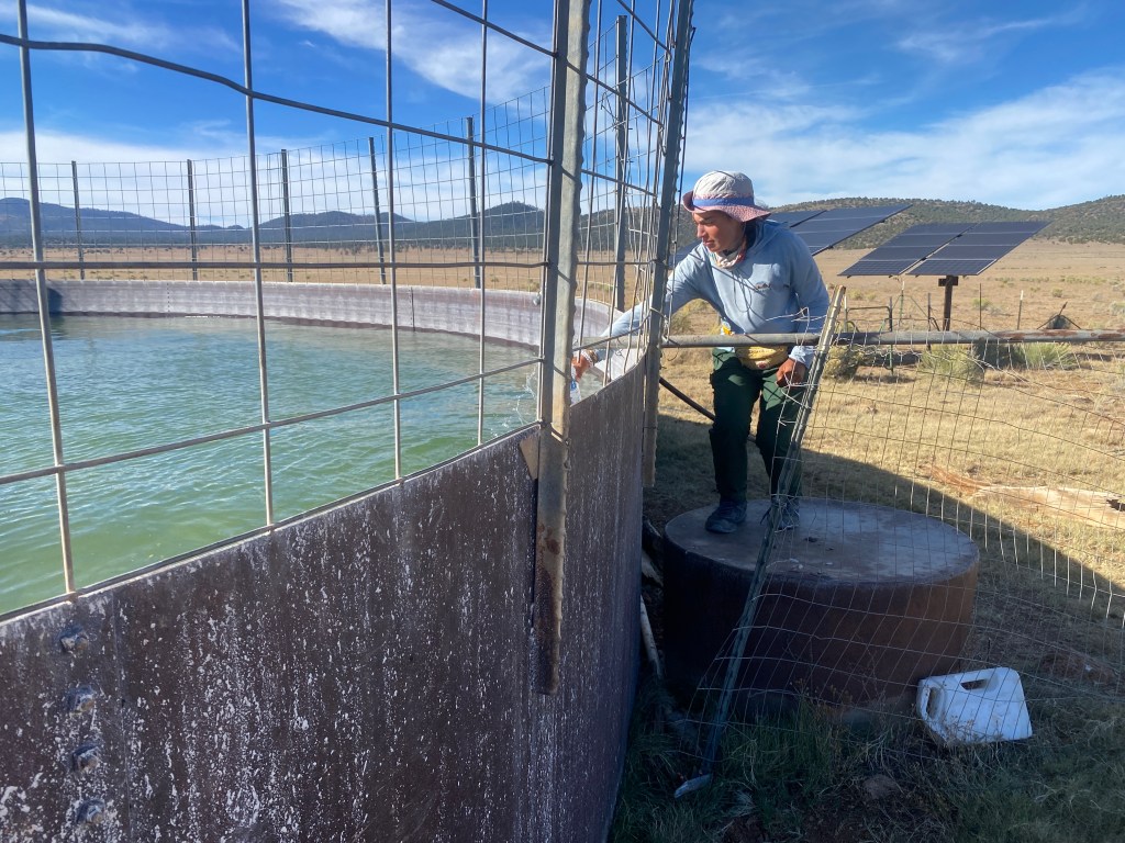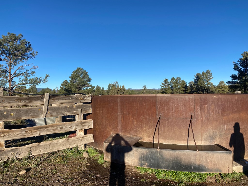 From our campsite, it was less than three miles to Aragon Tank. The tank was gigantic, maybe 6 feet tall and 25 feet in diameter, brimming with good water. It had tiny fish and a flock of robins sat on the adjacent fence posts. Luckily the tank was in direct sunlight so we basked as we filtered water. It was a long stop as we collected three liters apiece then realized that we had cell service and sent a few texts.