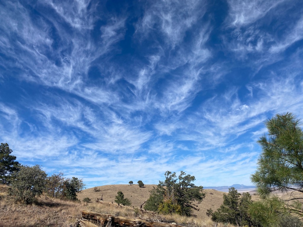 A quick five miles of walking brought us to a random water spigot, fed from a well on an 80 acre property that was for sale. Included with the property were piles of junk, a smashed port-a-potty, and an elk tag! As we climbed in elevation through the Apache National Forest, I admired the occasional alligator juniper with their scaly bark. Top Shelf and I chatted away and soon we’d reached the top of our climb, Mangas Mountain, a 9,600 foot peak with a lookout tower. We ate lunch before we began the descent.