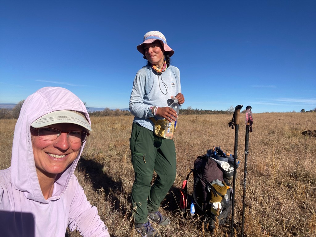 Mid-afternoon, we got water from a cement cistern in a cow field. The first cistern that I peered into had a long drop to the water, but FarOut comments directed us to a smaller one where the water was nearly level with the opening. From there, we walked a series of dirt roads that got narrower and rockier. We came across three hunters in an ATV that had never heard of the CDT or really any New Mexico landmark mentioned by Top Shelf. We decided that they were from Texas.